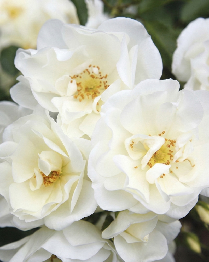 Weiße, gefüllte Bodendeckerrose mit herausragender Blattgesundheit. Ein Blütenmeer den ganzen Sommer über, ausgezeichnet als ADR-Rose.